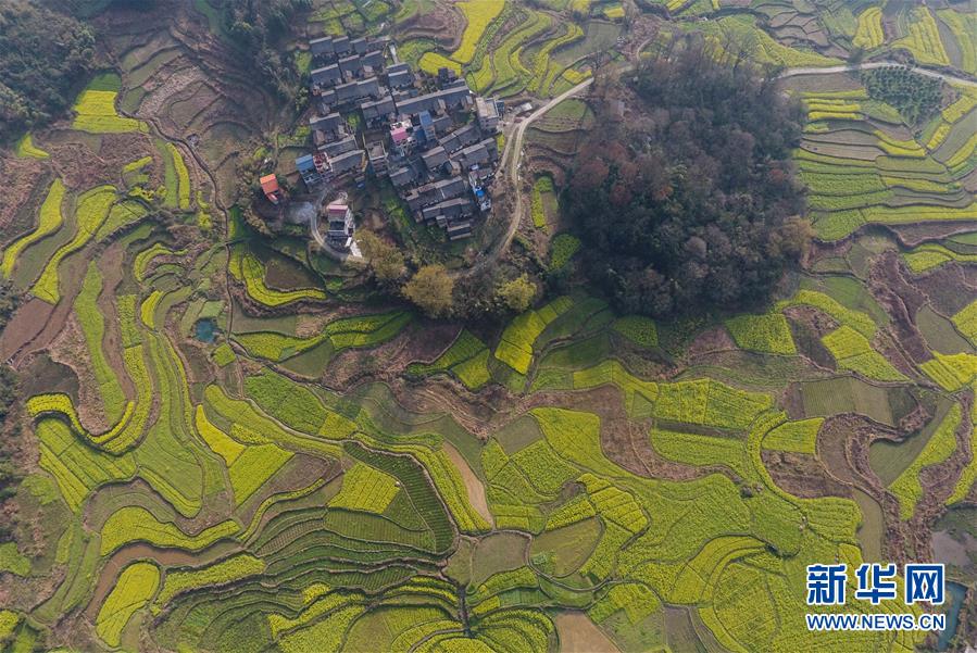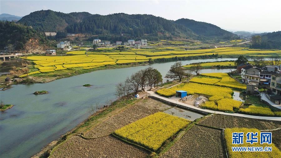 3月20日在貴州錦屏縣敦寨鎮(zhèn)拍攝的春景(無(wú)人機(jī)拍攝)。春分將至,貴州各地成片的油菜花漸次綻放,如同金色的地毯鋪上云貴高原。 新華社記者 歐東衢 攝