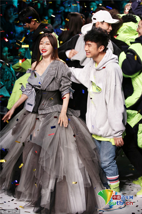 2019年3月31日,上海,2019上海秋冬時裝周,秦嵐助陣古巨基自創(chuàng)品牌大秀。她穿西裝紗紗裙笑容滿面可鹽可甜,斜肩小西裝正好能露出天鵝頸的線條,性感又不失知性?!拔灏⒏纭惫啪藁鶆t穿著隨性,與“知畫”牽手走秀,引起滿滿“回憶殺”。