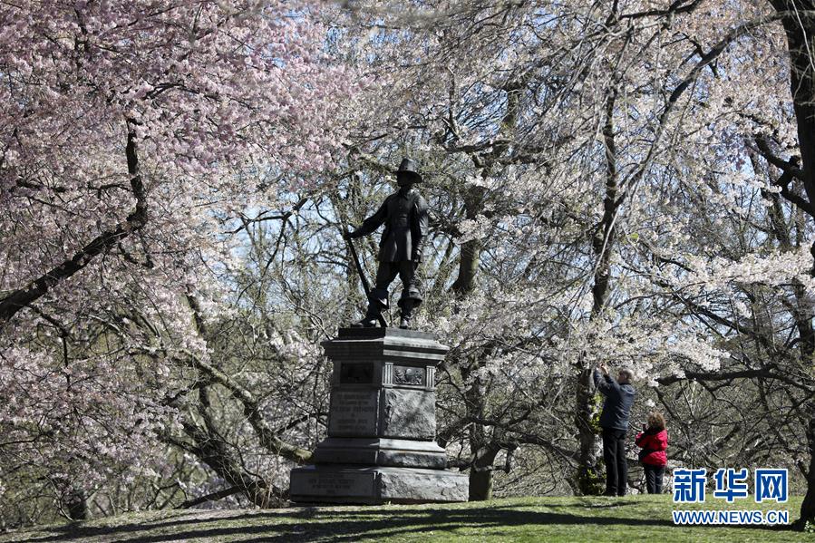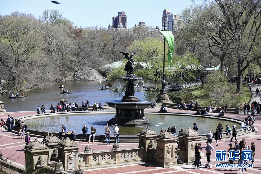 4月16日,人們?cè)诿绹~約中央公園游覽。 新華社記者 王迎 攝