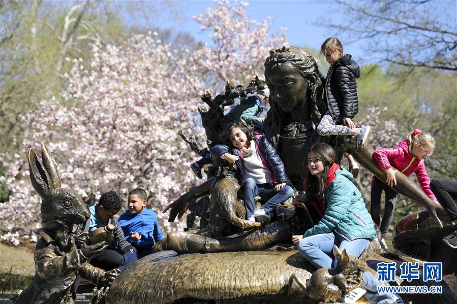 4月16日,人們?cè)诿绹~約中央公園游玩。 新華社記者 王迎 攝
