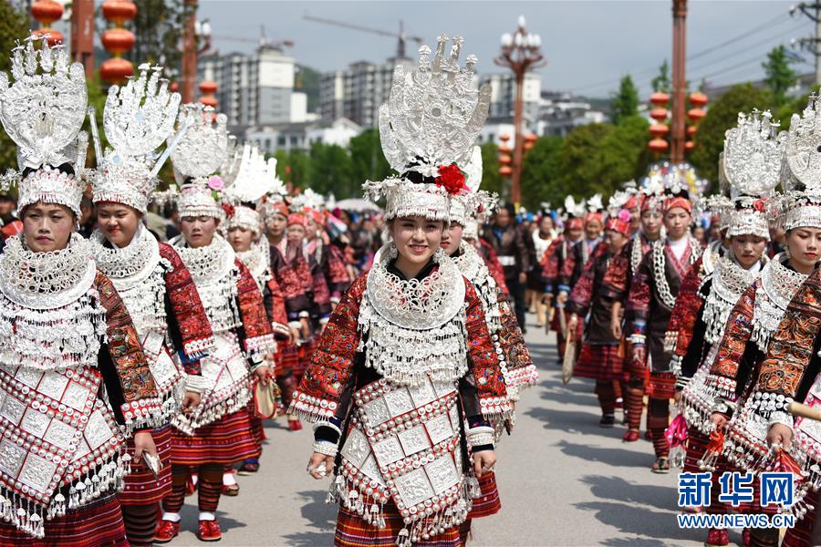 4月18日,臺(tái)江縣苗族群眾參加盛裝游演活動(dòng)。 當(dāng)日,貴州省黔東南苗族侗族自治州臺(tái)江縣迎來一年一度的苗族姊妹節(jié)。節(jié)日期間將舉行苗族盛裝游演、千人長(zhǎng)桌宴、千人游方體驗(yàn)、苗族手工創(chuàng)意大賽等一系列活動(dòng)。 姊妹節(jié)是臺(tái)江縣苗族同胞的傳統(tǒng)節(jié)日,2006年被列入第一批國家級(jí)非物質(zhì)文化遺產(chǎn)名錄。 新華社記者 楊文斌 攝