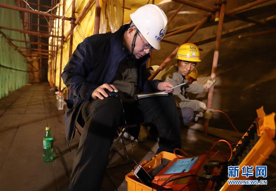 中鐵西北科學(xué)研究院有限公司文保中心的工程師孫博(左)在檢測(cè)探頭的數(shù)據(jù)穩(wěn)定性(3月18日攝)。新華社記者 江宏景 攝