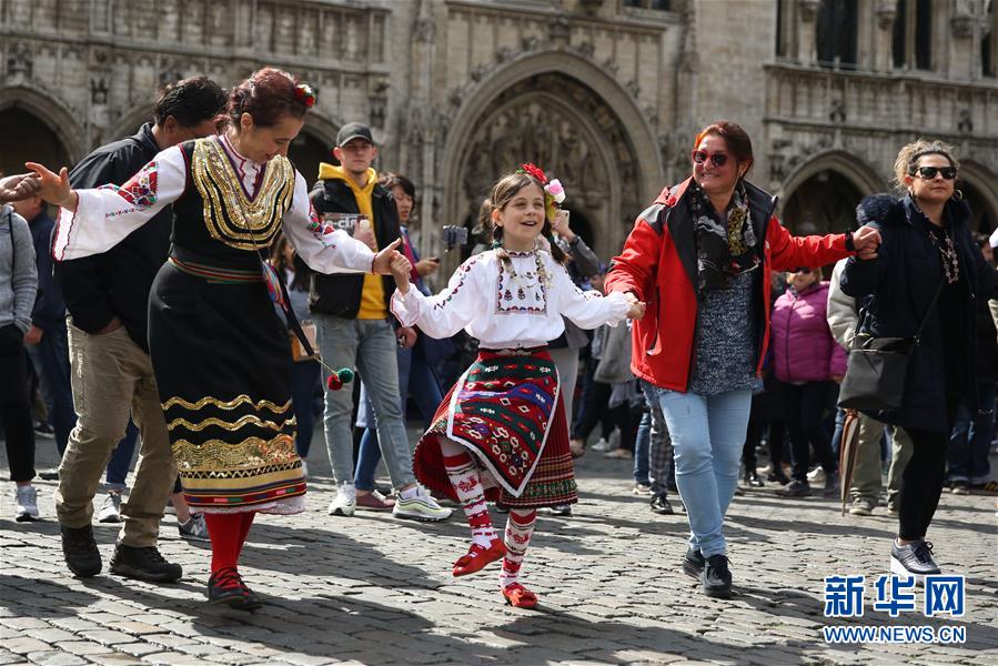 4月28日,在比利時布魯塞爾大廣場,演員表演保加利亞的民族舞蹈。 當日,來自歐洲多個國家的表演者在比利時布魯塞爾大廣場載歌載舞,慶祝為期五天的2019年巴爾干文化藝術(shù)節(jié)圓滿落幕。該文化藝術(shù)節(jié)旨在用音樂、舞蹈、文學(xué)、街頭藝術(shù)等方式向公眾展現(xiàn)東南歐巴爾干半島地區(qū)的民族文化風情。 新華社記者鄭煥松攝