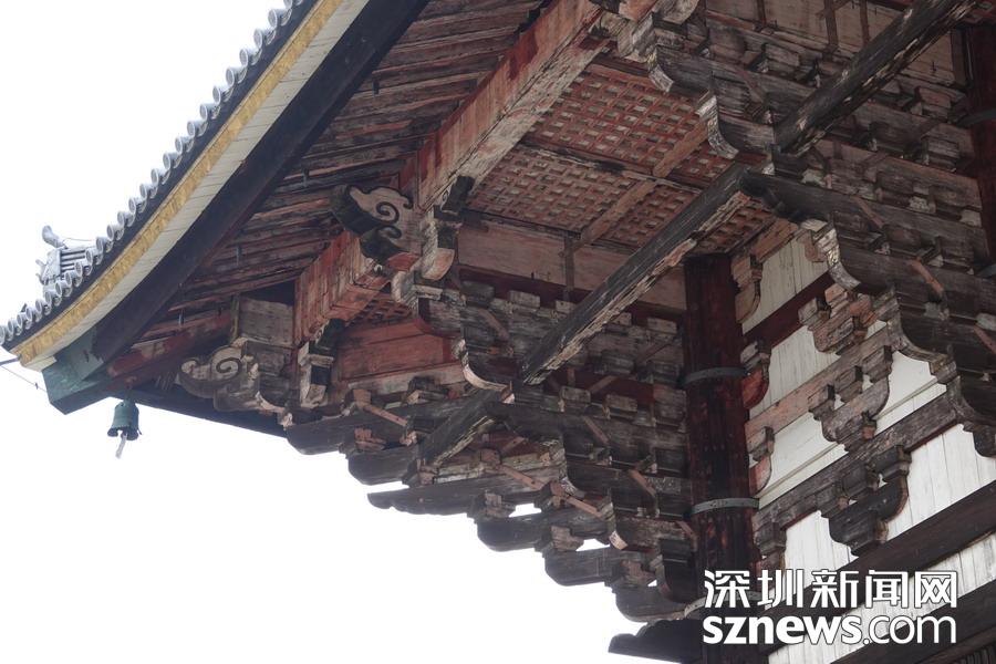 東大寺大佛殿正面寬度57米,深50米,為世界最大的木造建筑。殿內(nèi)放置著高15米以上的盧舍那佛像。中國(guó)唐代高僧鑒真和尚曾在這里設(shè)壇授戒。李仁奇 攝