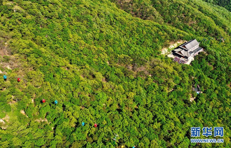 這是5月2日拍攝的盤山風(fēng)景名勝區(qū)正門景觀(無人機(jī)拍攝)。新華社記者 岳月偉 攝