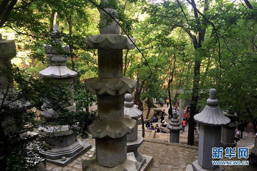 5月2日,游客在盤山風(fēng)景名勝區(qū)參觀塔林。新華社記者 岳月偉 攝