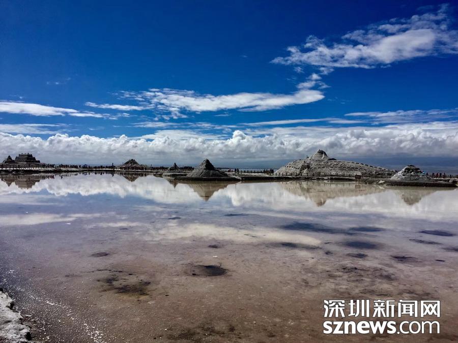 茶卡鹽湖位于青海省海西蒙古族藏族自治州烏蘭縣茶卡鎮(zhèn),原來是一家生產(chǎn)湖鹽的企業(yè),其擁有的鹽湖面積達(dá)105平方公里。近年來他們開始轉(zhuǎn)型發(fā)展旅游業(yè),以其獨特的“天空之鏡”享譽全國。李仁奇  攝