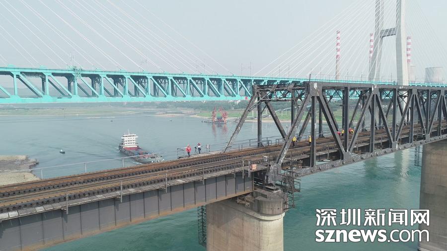 中國鐵路成都局有限公司重慶工務(wù)段的巡檢班組在白沙沱長江大橋上進行巡檢作業(yè)(4月23日攝)。 4月23日下午5點40分,隨著重慶白沙沱長江大橋通行的最后一列客運列車順利通過,這座“服役”了59年的重慶首座長江大橋進入“退役”倒計時。4月24日后,所有列車將改線經(jīng)距白沙沱長江大橋約100米的新白沙沱長江特大橋通行,新橋“接力”老橋,運輸能力將得到大幅提升。 白沙沱長江大橋于1958年開工,1960年通過首趟列車,是繼武漢長江大橋之后的第二座長江大橋。 新華社記者 劉潺 攝