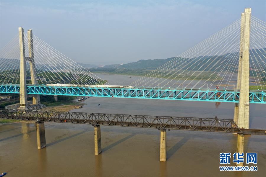 一列高鐵列車從新白沙沱長(zhǎng)江特大橋上駛過(4月23日無人機(jī)拍攝)。 4月23日下午5點(diǎn)40分,隨著重慶白沙沱長(zhǎng)江大橋通行的最后一列客運(yùn)列車順利通過,這座“服役”了59年的重慶首座長(zhǎng)江大橋進(jìn)入“退役”倒計(jì)時(shí)。4月24日后,所有列車將改線經(jīng)距白沙沱長(zhǎng)江大橋約100米的新白沙沱長(zhǎng)江特大橋通行,新橋“接力”老橋,運(yùn)輸能力將得到大幅提升。 白沙沱長(zhǎng)江大橋于1958年開工,1960年通過首趟列車,是繼武漢長(zhǎng)江大橋之后的第二座長(zhǎng)江大橋。 新華社記者 劉潺 攝