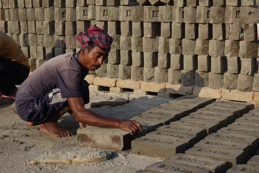 孟加拉國(guó)的民用建筑還在大量使用我國(guó)已趨于淘汰的實(shí)心粘土磚,全國(guó)有約8000家磚廠(chǎng),產(chǎn)值達(dá)到全國(guó)GDP的五分之一。李仁奇 攝