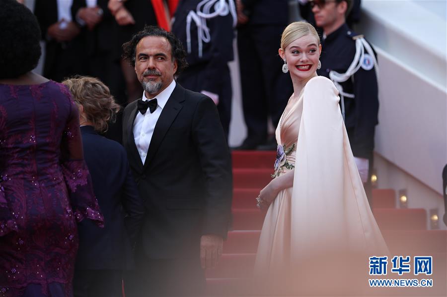 5月14日,在法國南部城市戛納,戛納電影節(jié)主競(jìng)賽單元評(píng)委墨西哥導(dǎo)演亞歷杭德羅·伊尼亞里圖(左)和美國演員埃勒·范寧亮相開幕式紅毯。 5月14日,第72屆戛納電影節(jié)在戛納開幕。本屆電影節(jié)將持續(xù)至5月25日。 新華社記者 張鋮 攝