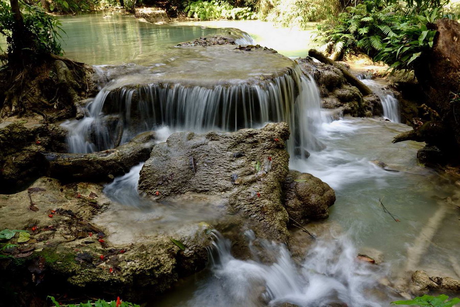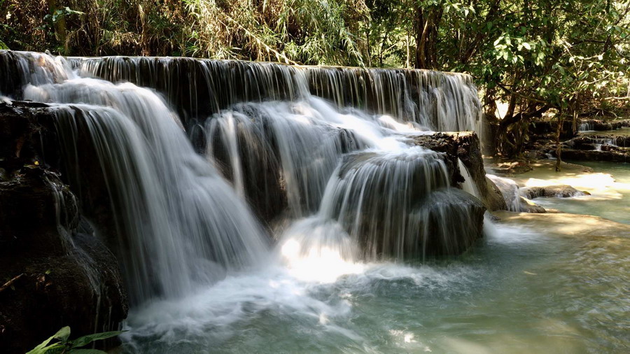 光西瀑布是一個瀑布群,位于瑯勃拉邦以南30多公里的原始森林中,其中一處高40多米,雖然水量不大,但有一種天然的涓細(xì)之美,不同凡響。李仁奇 攝