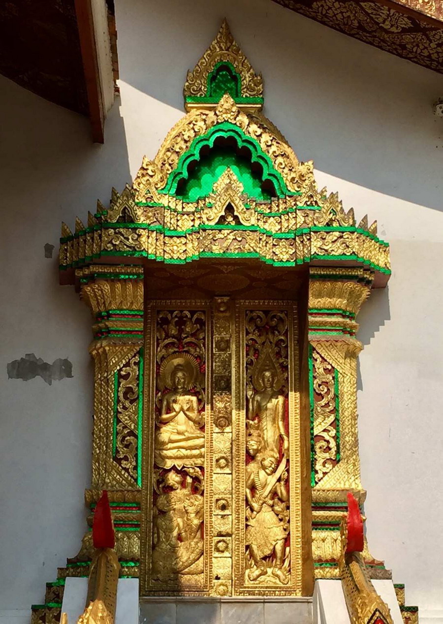 其中的大殿具有老撾經(jīng)典的寺廟建筑風(fēng)格,與配殿、琉璃塔、白塔等組成一個精致的佛寺建筑群。李仁奇 攝