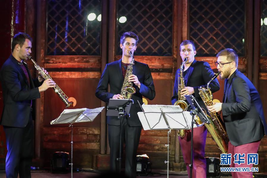 5月26日,凱比亞特樂隊(duì)成員在音樂會上表演。 當(dāng)日,作為第十九屆“相約北京”藝術(shù)節(jié)系列演出之一,西班牙凱比亞特樂隊(duì)薩克斯四重奏音樂會在北京Temple東景緣上演。 新華社記者 張玉薇 攝