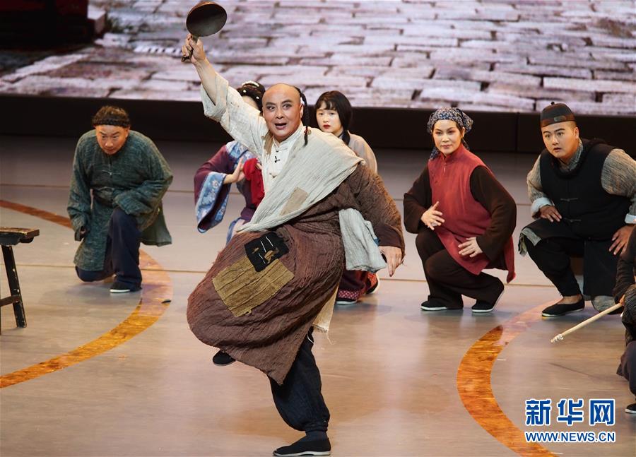 6月2日,獲得文華表演獎的演員梁偉平在第十二屆中國藝術(shù)節(jié)閉幕式上匯報(bào)演出淮劇《武訓(xùn)先生》選段。 新華社記者 任瓏 攝