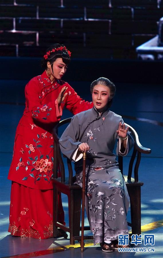 6月2日,蘇州市蘇劇傳習保護中心演員在第十二屆中國藝術(shù)節(jié)閉幕式上匯報演出獲得文華大獎的蘇劇《國鼎魂》選段。 新華社記者 任瓏 攝