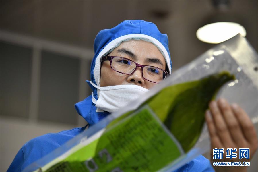 6月5日,在榮成一家水產(chǎn)養(yǎng)殖公司,工作人員在加工海帶。 近日,山東省榮成市迎來海帶收獲季。據(jù)悉,榮成市海帶養(yǎng)殖面積14.5萬畝,年產(chǎn)海帶43.3萬噸以上。 新華社記者郭緒雷攝