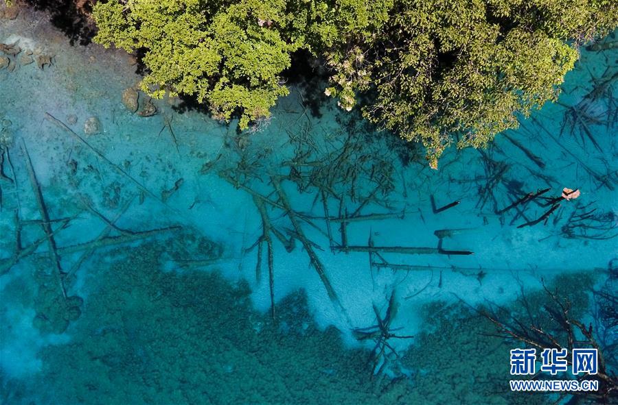 這是九寨溝景區(qū)的五花海景點(diǎn)(6月5日無(wú)人機(jī)拍攝)。