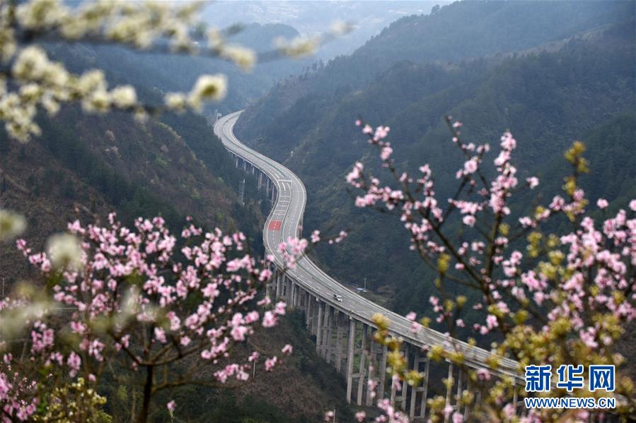 貴州思劍高速公路劍河縣岑松鎮(zhèn)段的春季景觀(3月23日攝)。陽春時節(jié),貴州思(南)劍(河)高速公路劍河縣岑松鎮(zhèn)附近的桃花和梨花陸續(xù)開放。 新華社記者楊文斌攝
