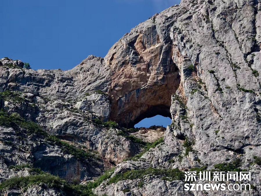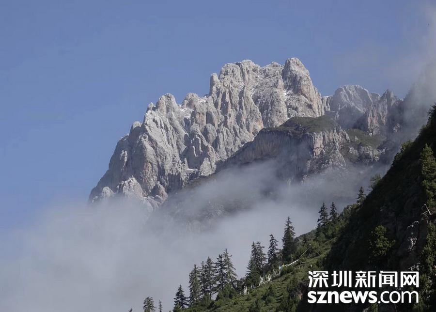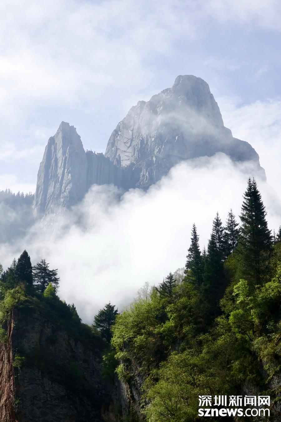 乘坐通往核心景區(qū)的旅游車進(jìn)入臨近壯觀山體的地段,從獨特的角度看到了云霧繚繞的山峰,真有置身仙境的感覺。李仁奇攝