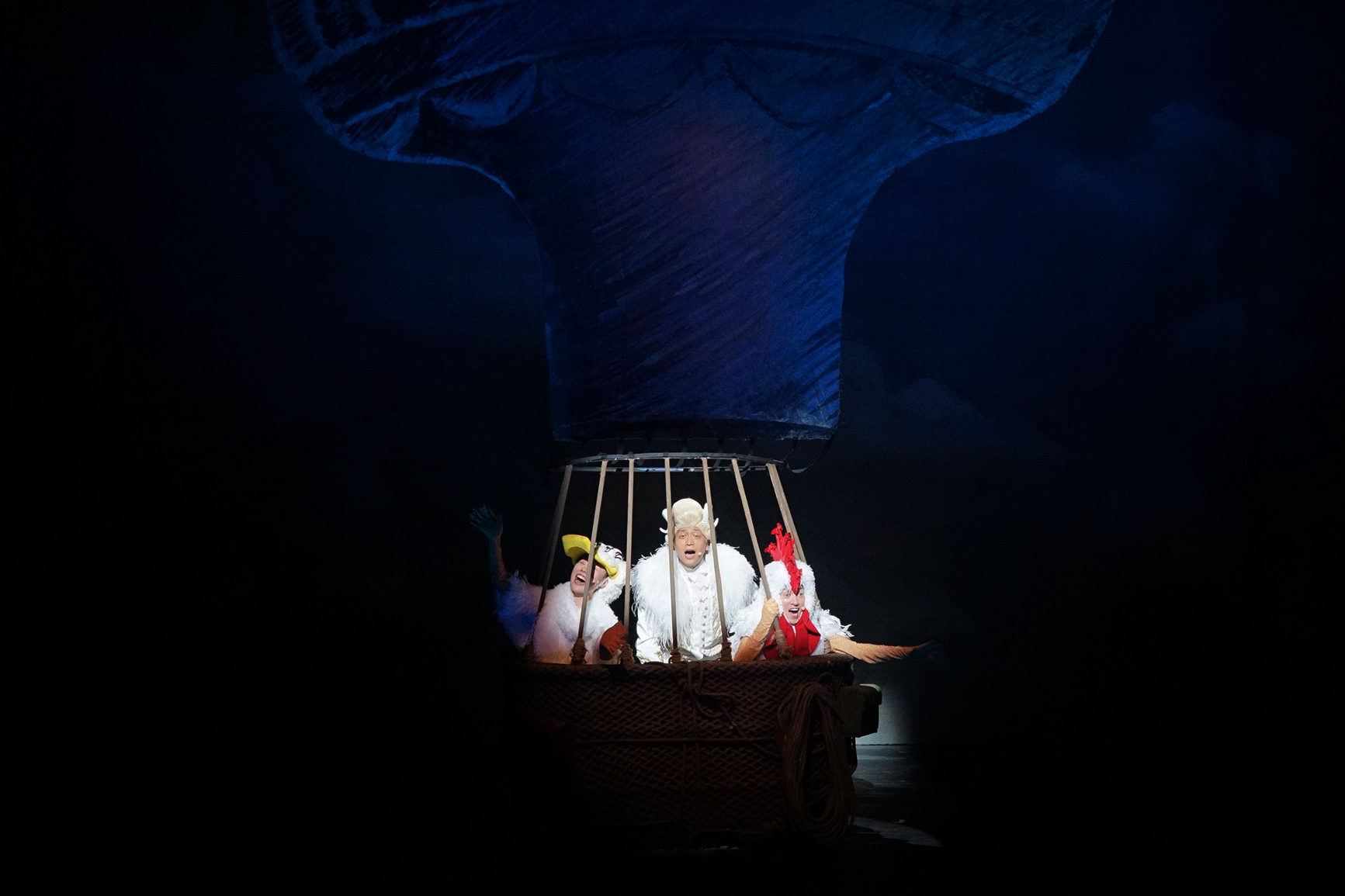 《毛毛帶你飛》整個(gè)舞臺(tái)就是一個(gè)巨大的“飛行實(shí)驗(yàn)室”,舞臺(tái)上的每個(gè)角落都隱藏著不同時(shí)代的飛行器:巨大的紙鳶,大小不一的孔明燈,萬(wàn)戶飛天的火箭椅,最古老的熱氣球……伴隨著故事的不斷發(fā)展,小朋友可以清晰地認(rèn)識(shí)到飛行器是如何一點(diǎn)點(diǎn)進(jìn)化和完善的。在美國(guó)萊特兄弟發(fā)明雙翼飛機(jī)“飛行者一號(hào)”的時(shí)候,舞臺(tái)上會(huì)飛出一架寬達(dá)8米的巨型雙翼飛機(jī),讓小朋友近距離感受其所帶來(lái)的巨大震撼。