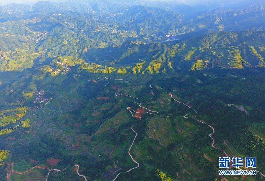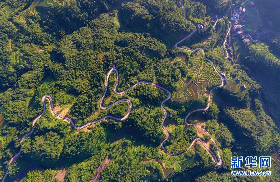這是融水苗族自治縣桿洞鄉(xiāng)百秀村的村屯公路(6月19日無人機(jī)拍攝)。新華社記者 黃孝邦 攝