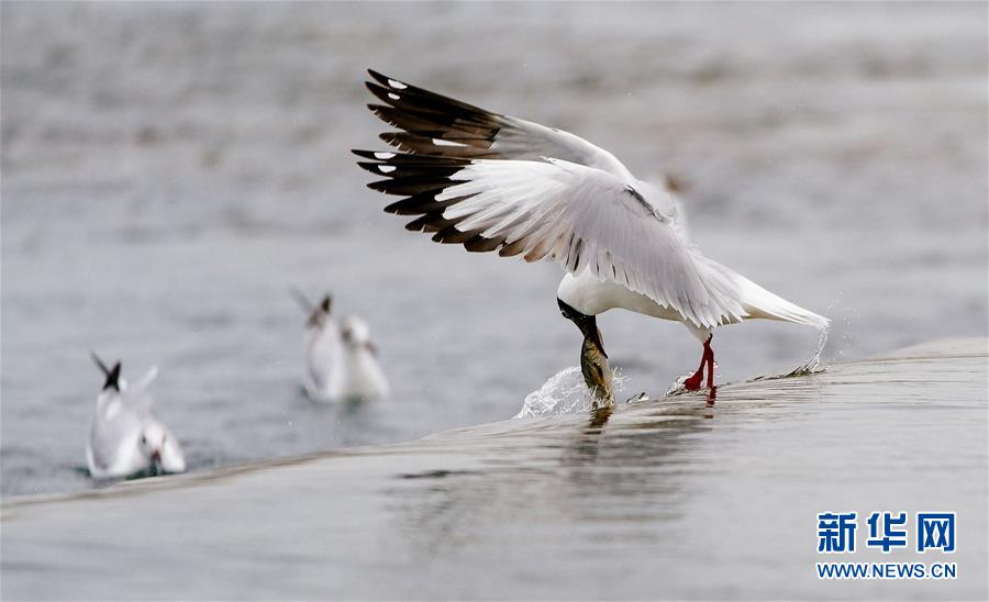 7月6日,在青海省剛察縣沙柳河里,一只棕頭鷗“錯(cuò)過”一條湟魚。  新華社記者 張宏祥攝