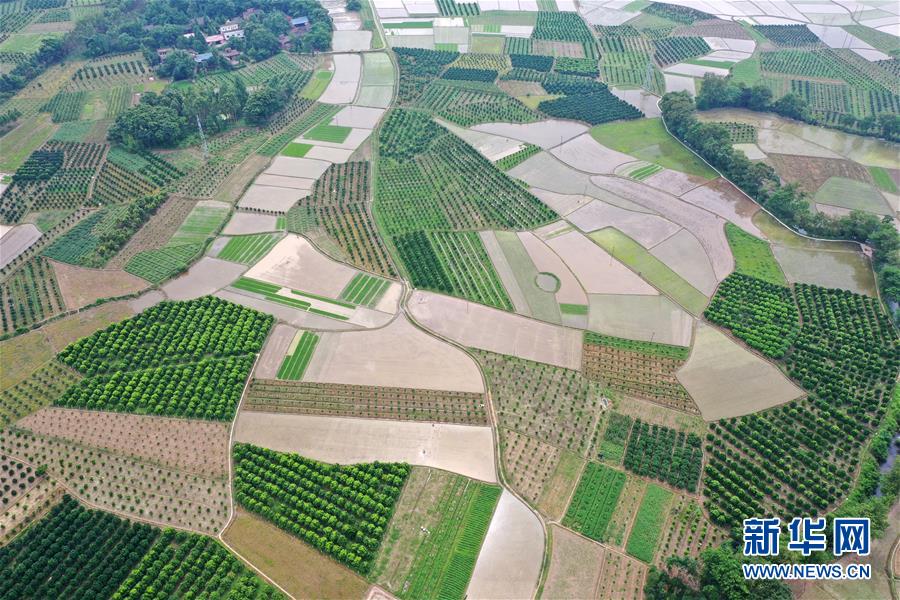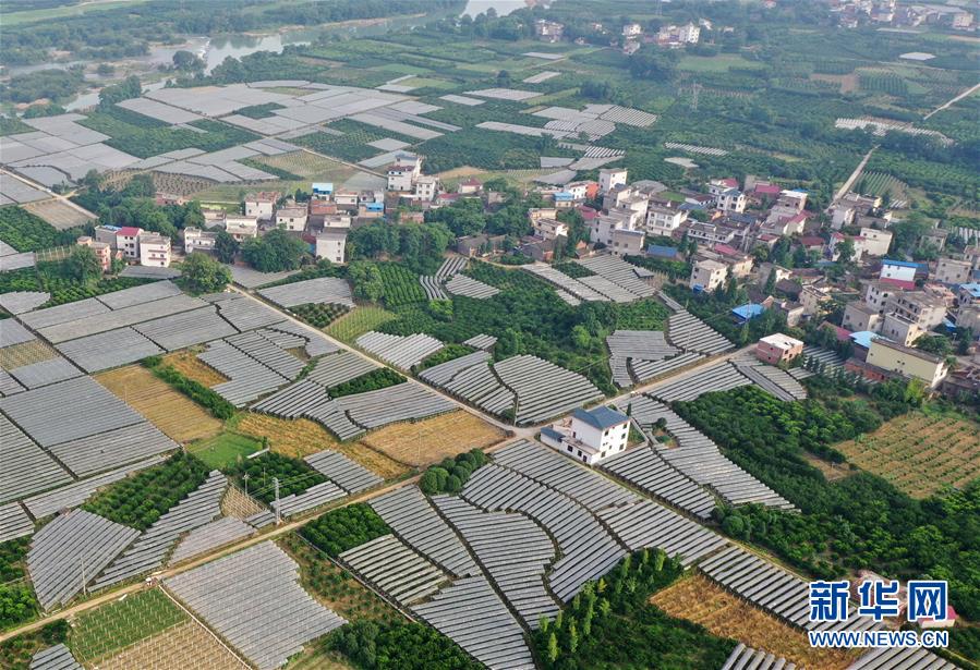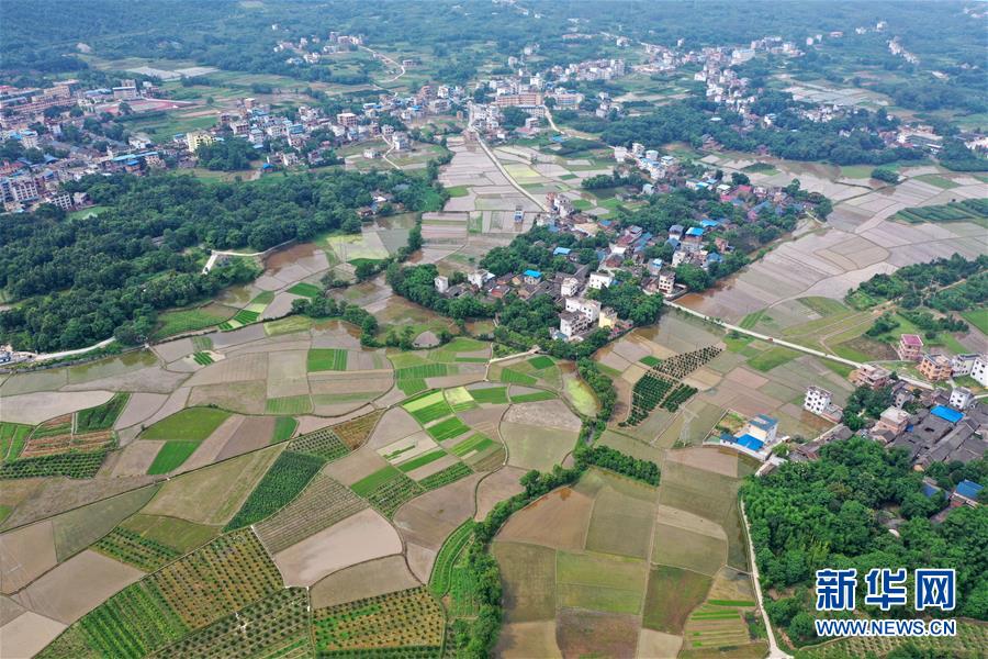 這是廣西全州縣鳳凰鎮(zhèn)鳳凰嘴渡口附近的田園(6月29日無人機拍攝)。  新華社記者 陸波岸 攝
