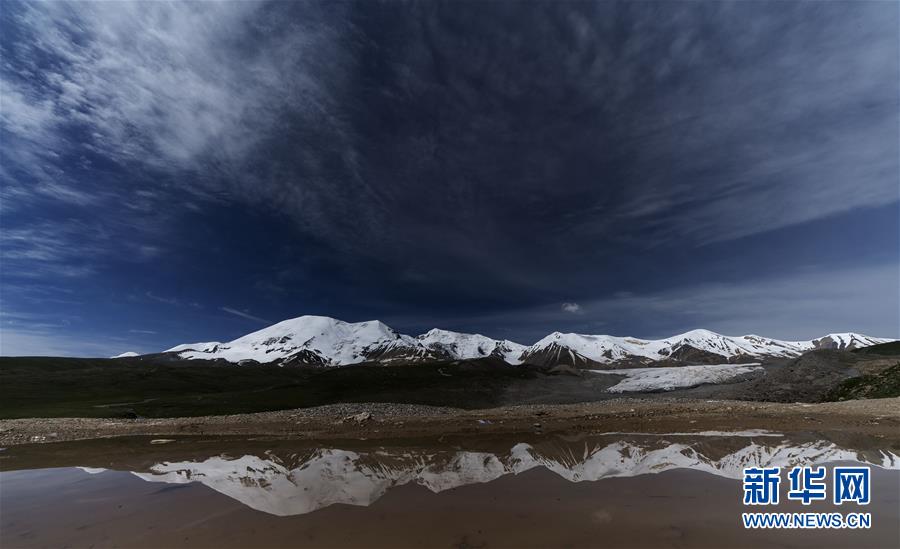 7月10日,阿尼瑪卿雪山與水面相映成畫。 新華社記者 費茂華 攝