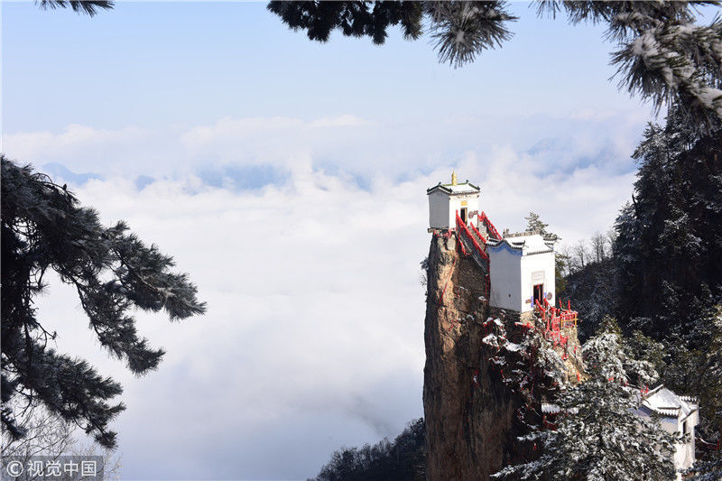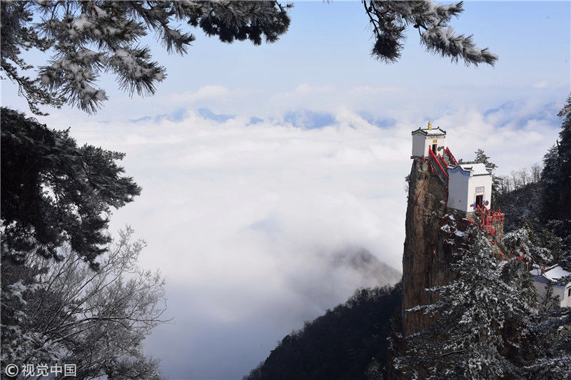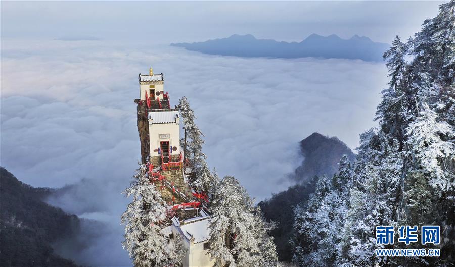 3月3日拍攝的塔云山金頂觀音殿。雪后初霽,秦嶺深處的塔云山景區(qū)云海翻騰,宛如仙境。位于陜西省鎮(zhèn)安縣柴坪鎮(zhèn)境內(nèi)的塔云山,其主峰上的古建筑群始建于明正德年間,其中金頂觀音殿建于塔云山萬仞絕頂之上,遠遠望去,壯觀無比。 新華社記者陶明攝