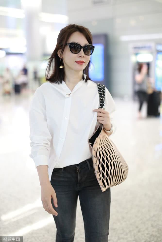 陳數(shù)穿白襯衫知性淺笑甜美迷人 架黑超拎漁網(wǎng)紋展職場女性魅力