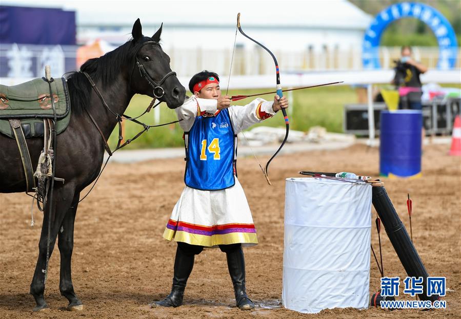 8月20日,騎手在“蒙古馬”傳統(tǒng)技巧表演中展示射箭。 當(dāng)日,“蒙古馬”傳統(tǒng)技巧表演在呼和浩特市內(nèi)蒙古少數(shù)民族群眾文化體育運(yùn)動(dòng)中心舉行,此次表演共包括騎馬穿樁、射箭、騎馬拾哈達(dá)、騎馬繞桶等多個(gè)傳統(tǒng)馬術(shù)技巧項(xiàng)目。 新華社記者 彭源 攝