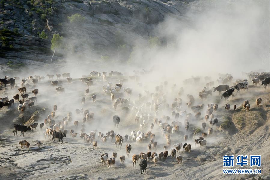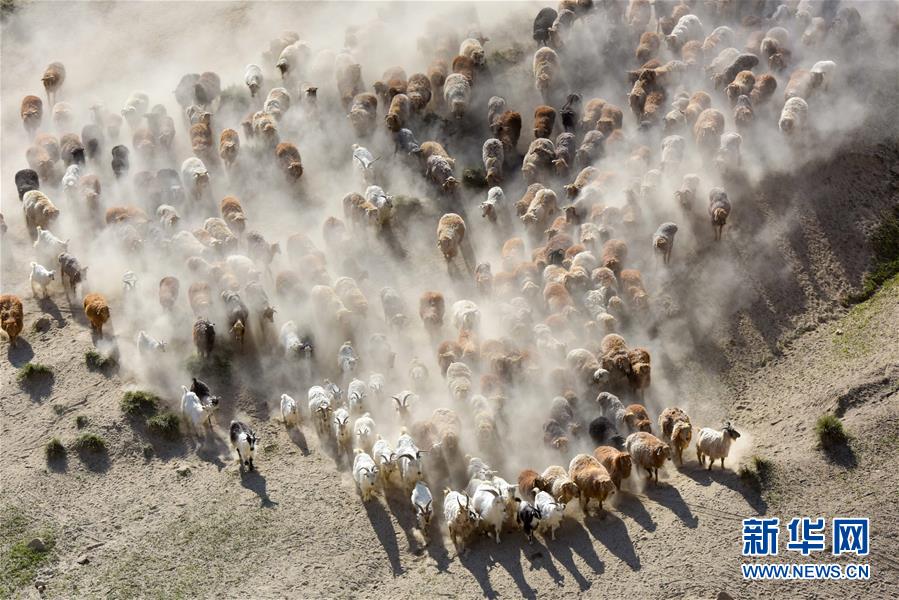 6月6日,新疆阿勒泰地區(qū)福??h牧民趕著牲畜向夏季牧場遷徙新華社記者 丁磊 攝