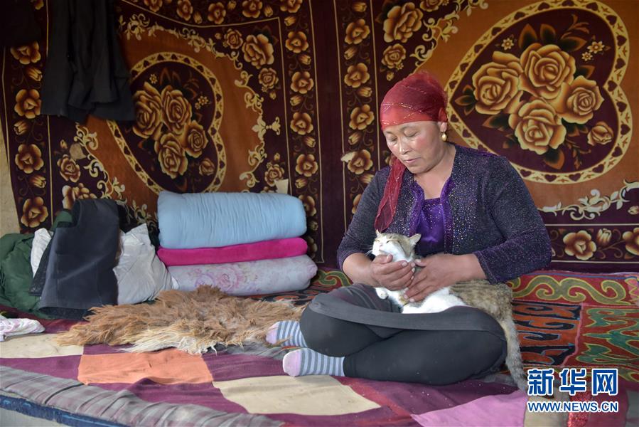 在新疆阿勒泰地區(qū)福海縣,牧民在家中等待轉(zhuǎn)場(chǎng)運(yùn)輸車輛(6月6日攝)。新華社記者丁磊攝