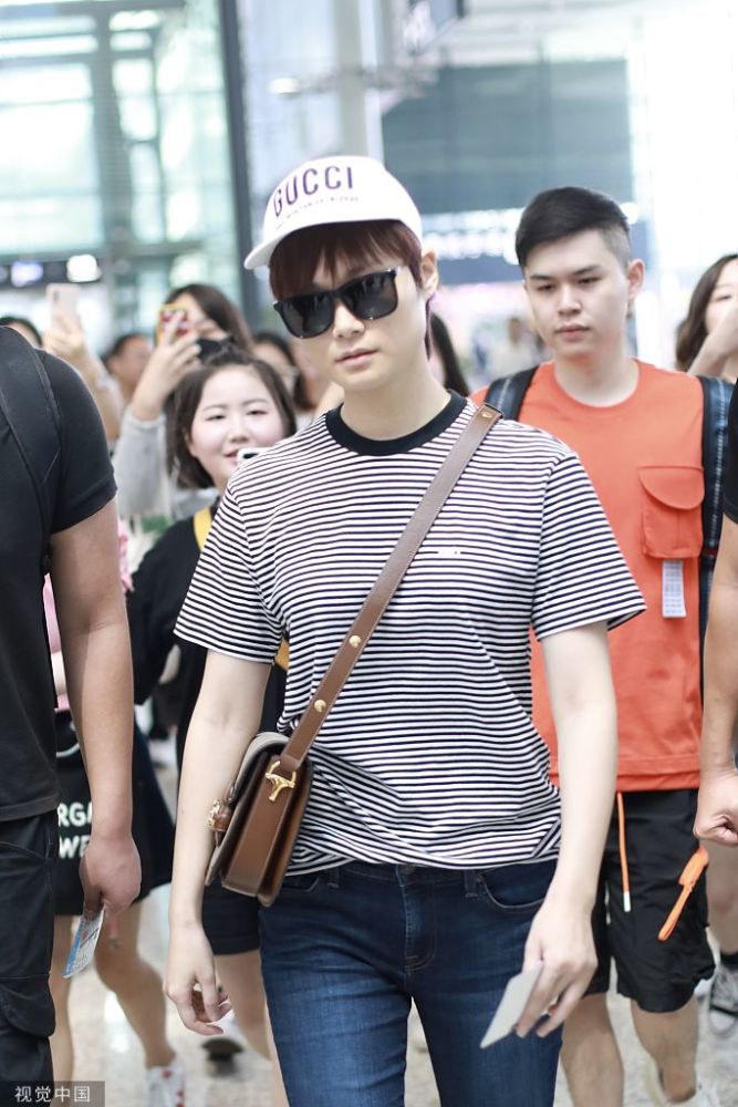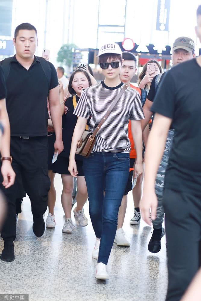李宇春條紋裝扮現(xiàn)身機(jī)場,青春活力,人氣爆棚