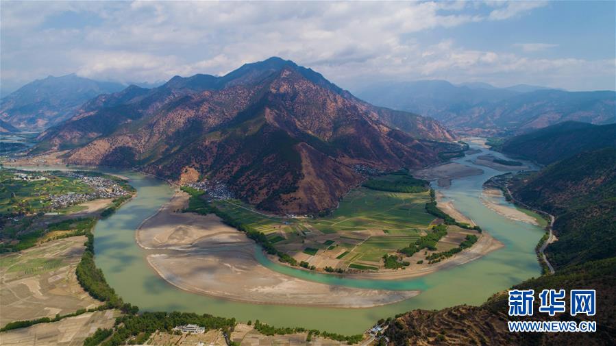 位于云南省麗江市玉龍納西族自治縣石鼓鎮(zhèn)的“長(zhǎng)江第一灣”(3月17日無(wú)人機(jī)拍攝)。 新華社記者胡超攝