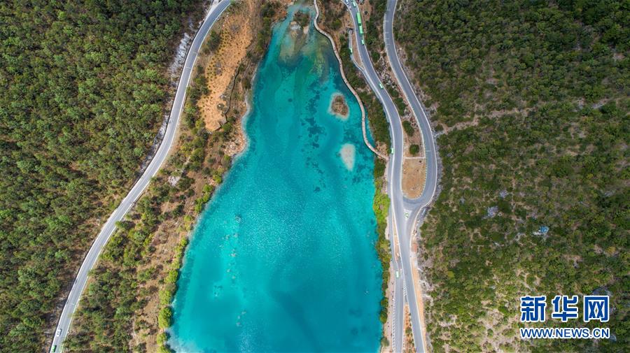 這是云南麗江玉龍雪山藍(lán)月谷景色(4月21日無(wú)人機(jī)拍攝)。 新華社記者胡超攝