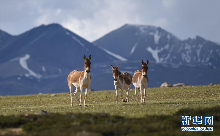 西藏札達縣香孜鄉(xiāng)熱布加林牧場上的藏野驢(7月29日攝)。新華社記者 晉美多吉 攝