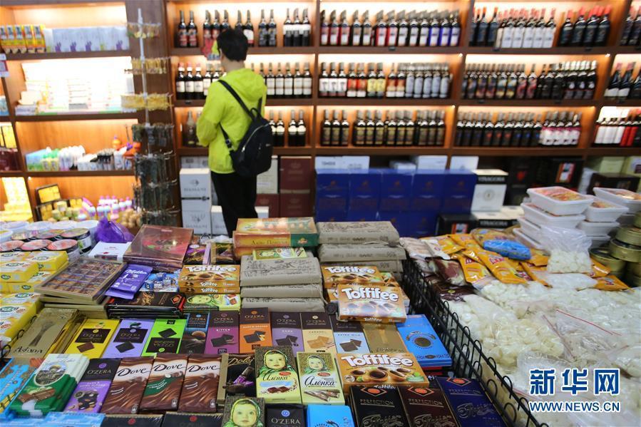 這是9月4日在新疆塔城地區(qū)巴克圖口岸的絲路文化商品城內(nèi)拍攝的進口產(chǎn)品。 新華社記者沙達提攝