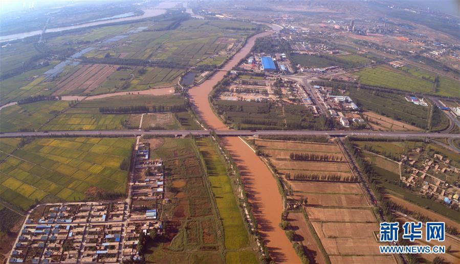 青銅峽市境內的黃河(9月3日無人機拍攝)。新華社記者劉詩平攝