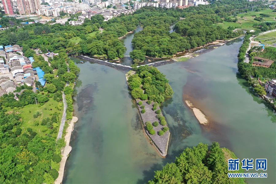 這是6月30日無人機拍攝的廣西興安縣靈渠。 位于廣西興安縣的靈渠是世界上保存最完整的古代水利工程之一,至今仍發(fā)揮著農田灌溉、排洪泄洪作用。2018年,靈渠入選世界灌溉工程遺產名錄。 新華社記者 周華 攝