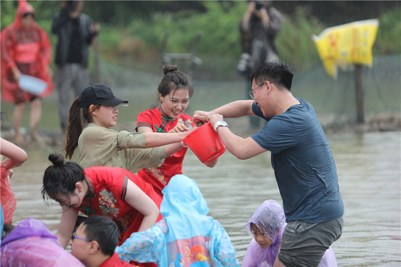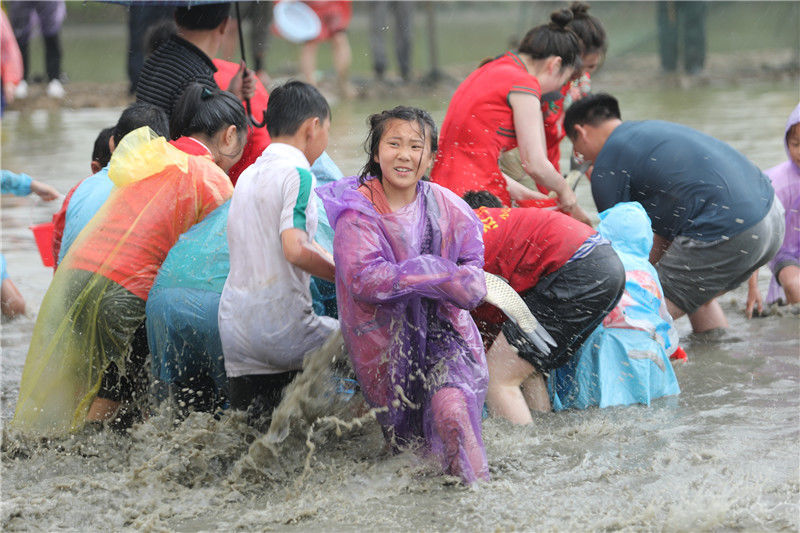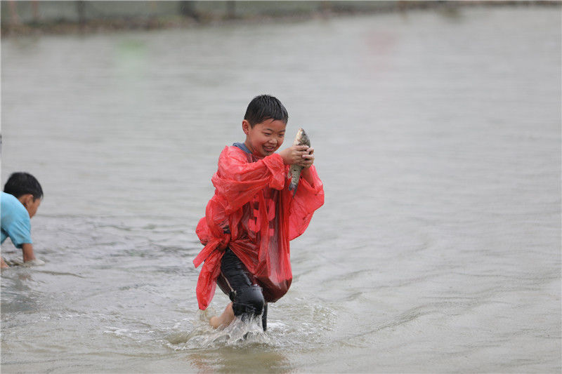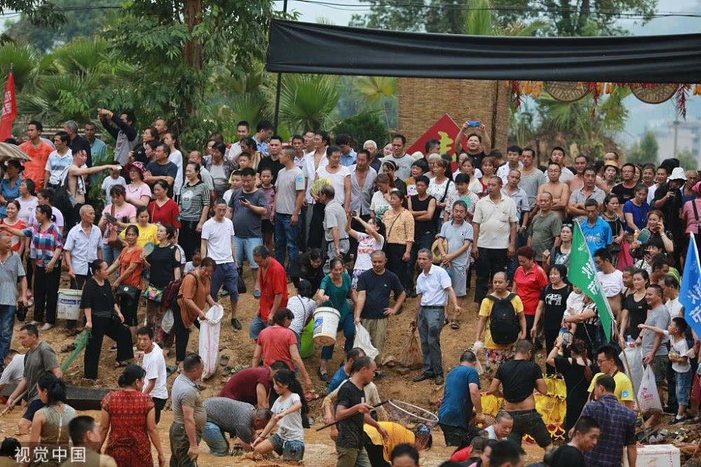 2019年9月7日,重慶,涪陵區(qū)曬秋捉魚活動在紅酒小鎮(zhèn)舉行,現(xiàn)場上演搶魚“大戰(zhàn)”。