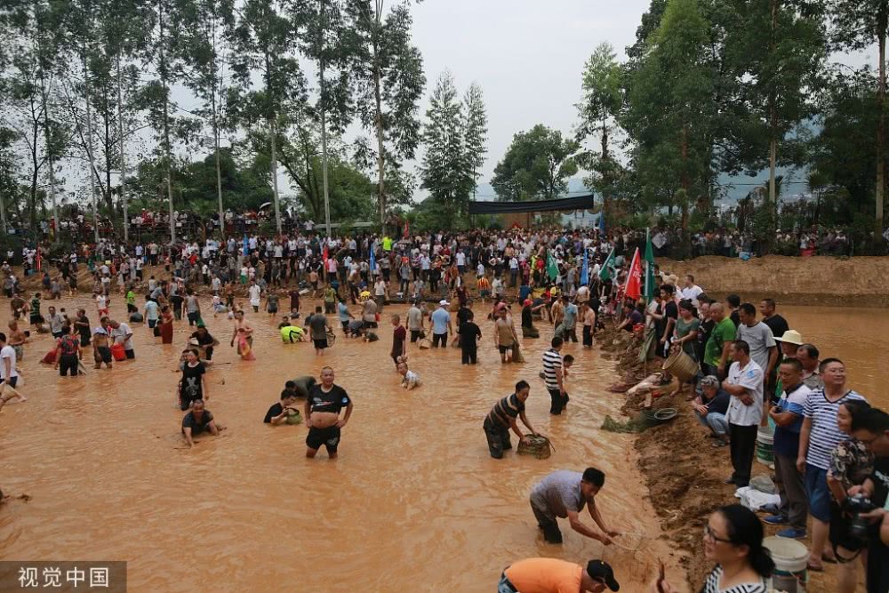 有人撒魚網(wǎng),有人用網(wǎng)兜,還有人直接徒手捉魚,手段各異引路人圍觀。