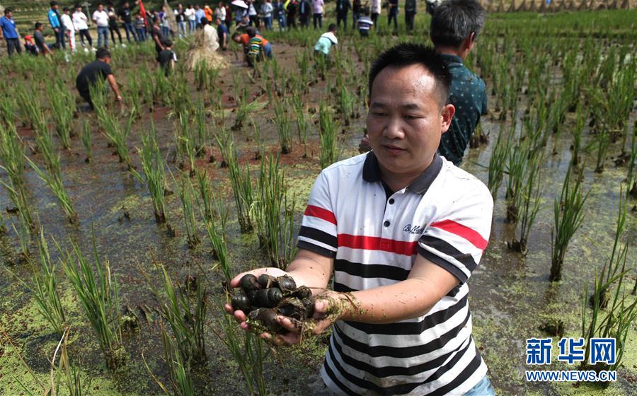 10月28日,在廣西融水苗族自治縣拱洞鄉(xiāng)龍令村,村民參加抓魚比賽。當(dāng)日,廣西融水苗族自治縣拱洞鄉(xiāng)舉辦香糯泉水螺美食文化節(jié),苗族、侗族、瑤族、壯族等各民族同胞歡聚一堂,通過摸螺抓魚比賽、田螺姑娘評選、跳蘆笙踩堂舞、品香螺百家宴等豐富多彩的活動,慶祝金秋豐收。近年來,拱洞鄉(xiāng)依托生態(tài)資源優(yōu)勢,大力發(fā)展香糯種植、田螺養(yǎng)殖等特色產(chǎn)業(yè)。全鄉(xiāng)的田螺養(yǎng)殖面積4000多畝,成立4家田螺產(chǎn)業(yè)專業(yè)合作社,帶動2000多農(nóng)戶參與到田螺養(yǎng)殖。目前,田螺養(yǎng)殖已成為當(dāng)?shù)刎毨裘撠氈赂坏闹匾a(chǎn)業(yè)。新華社記者 黃孝邦 攝