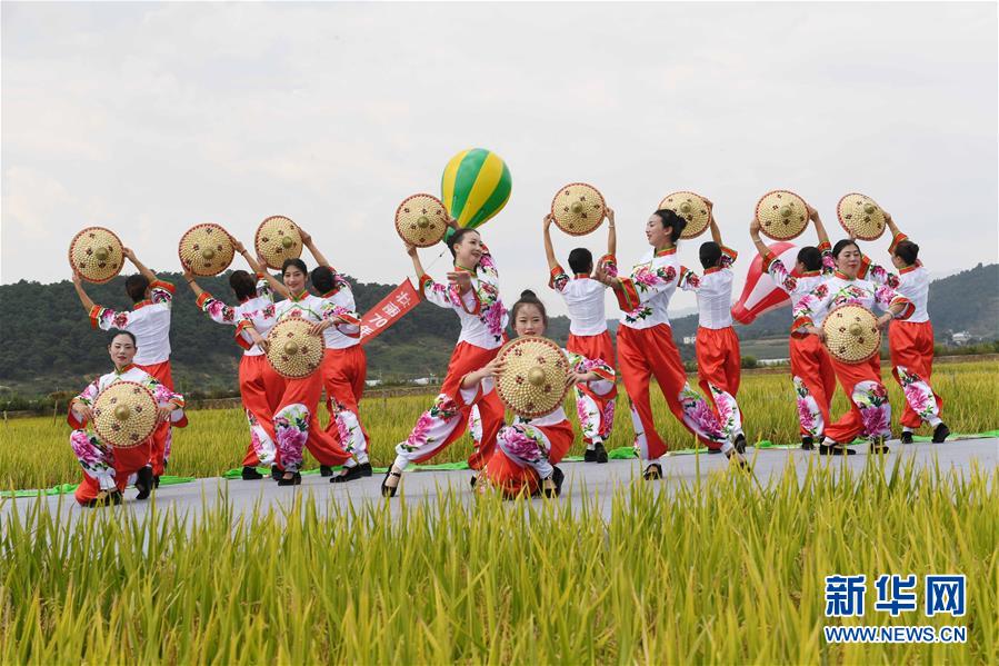 9月15日,人們在田野里表演舞蹈《在希望的田野上》。 新華社記者 楊宗友 攝