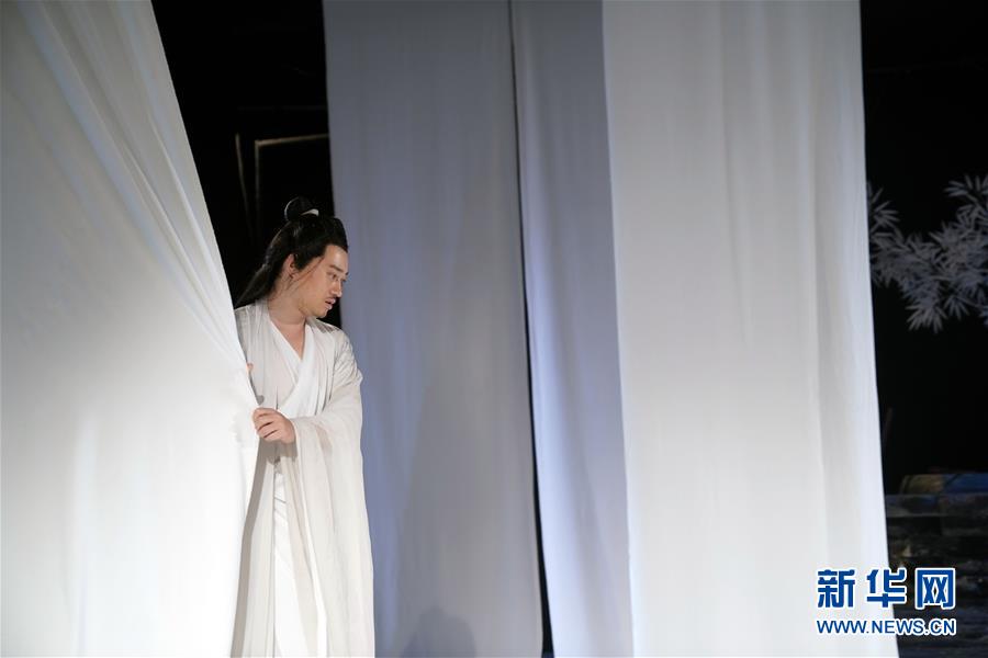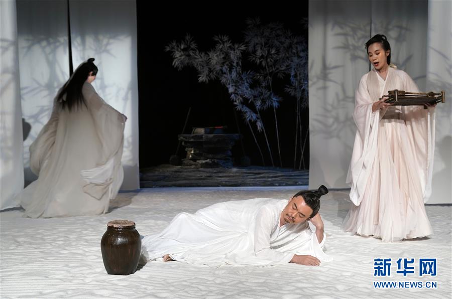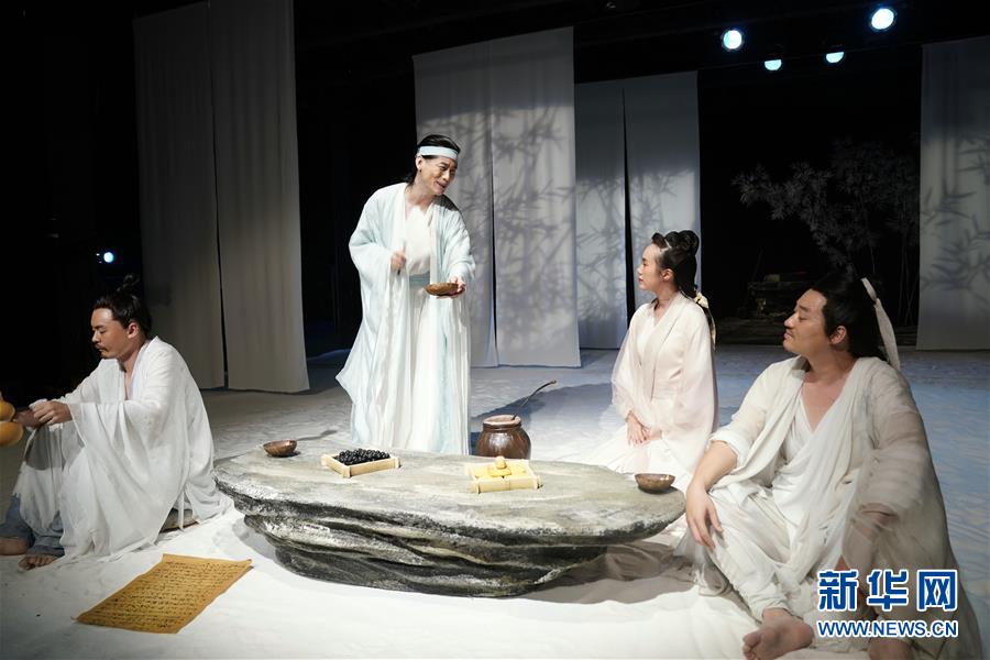 9月16日,演員在話劇《廣陵絕》中表演。 當(dāng)日,話劇《廣陵絕》在北京人藝實驗劇場上演。 新華社記者 金良快 攝