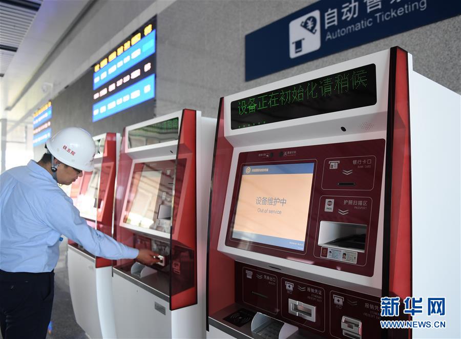 9月18日,工作人員對京雄城際北京大興站內(nèi)的自動售票機進行檢查。新華社記者張晨霖攝