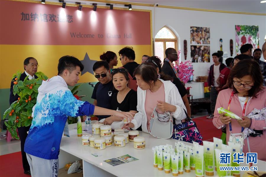 9月18日,參觀者在北京世園會(huì)加納館內(nèi)選購(gòu)商品。 當(dāng)日,2019年中國(guó)北京世界園藝博覽會(huì)“加納國(guó)家日”活動(dòng)在北京世園會(huì)園區(qū)舉行。 新華社記者 鞠煥宗 攝