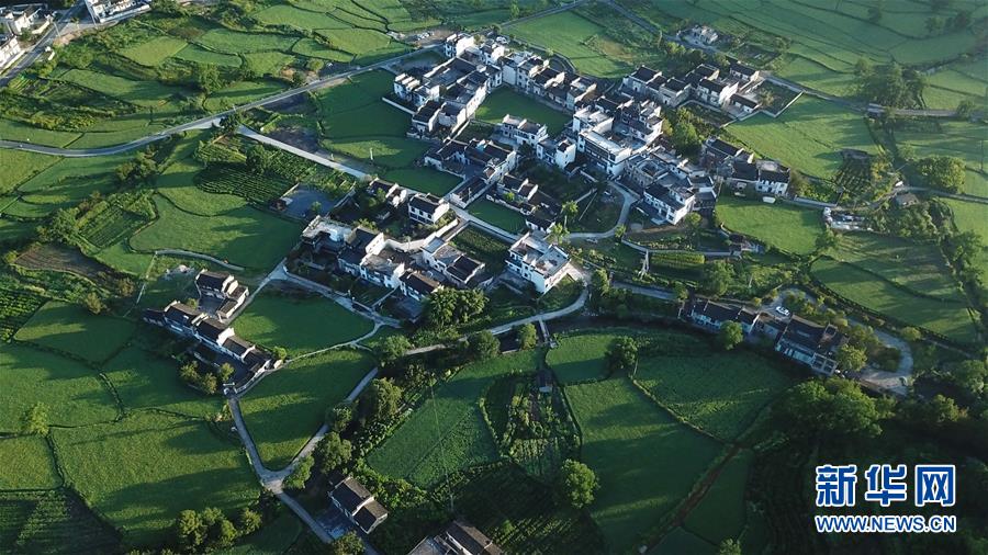 晨曦中的木梨硔村景色(9月18日無人機拍攝)。9月18日清晨,地處皖南山區(qū)的安徽省黃山市休寧縣木梨硔村沐浴在晨曦之中,靜謐祥和。新華社記者張端攝