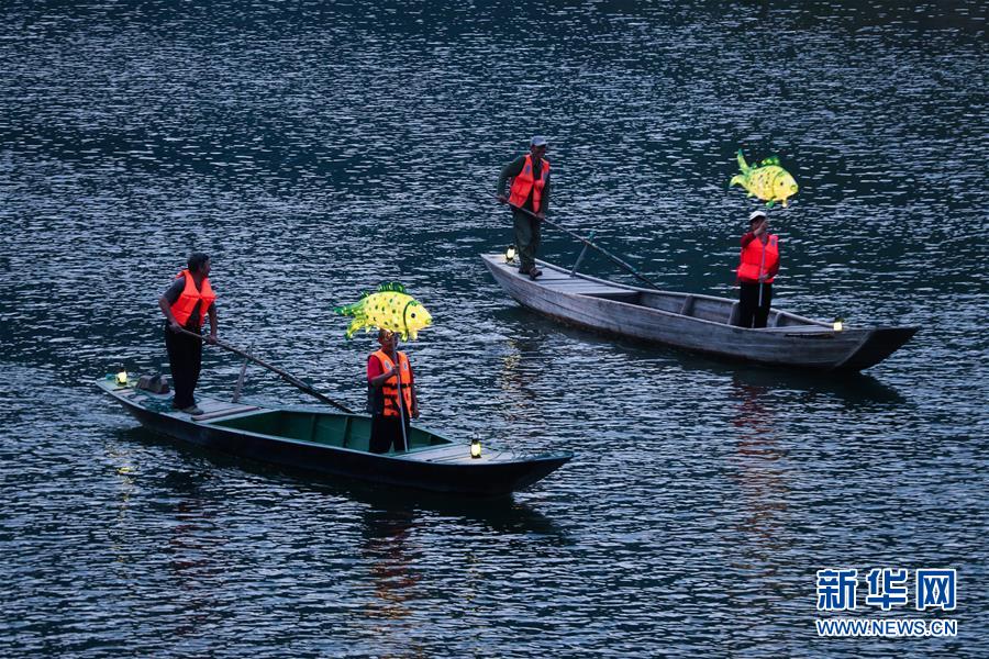 9月25日,在宋村鄉(xiāng)云源港的水面上,漁民劃著漁船,船頭點(diǎn)亮漁燈,構(gòu)成一幅“漁舟唱晚、萬家燈火”的美麗圖景。 新華社記者 徐昱 攝
